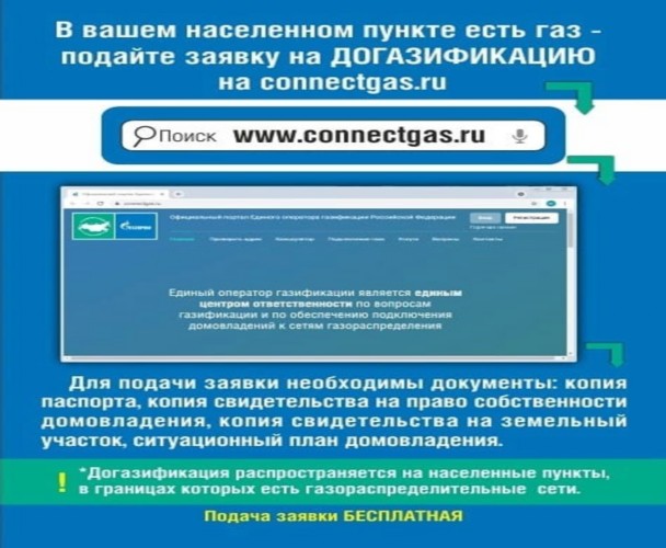 Полная информация по порядку догазификации, газифицированных населенных пунктов с возможностью подачи заявки на догазификацию размещена на портале единого оператора газификации - https://connectgas.ru/.