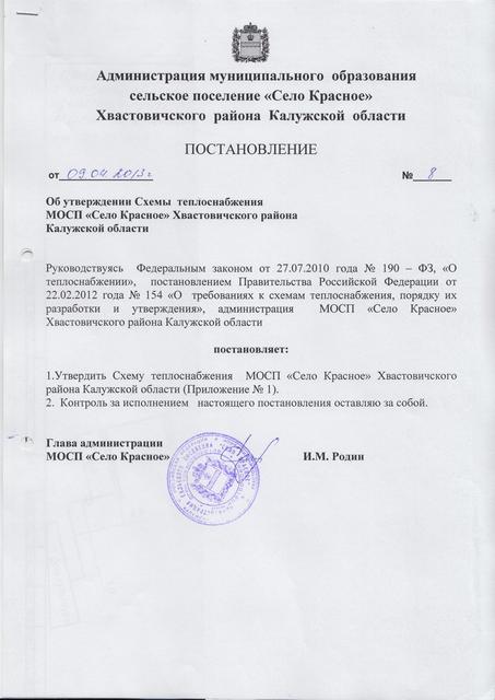 ПА №17 от 11.03.2020г. Об утверждении актуализвации схемы теплоснабжения МО СП "Село Красное" Хвастовичского района Калужской области. скачать